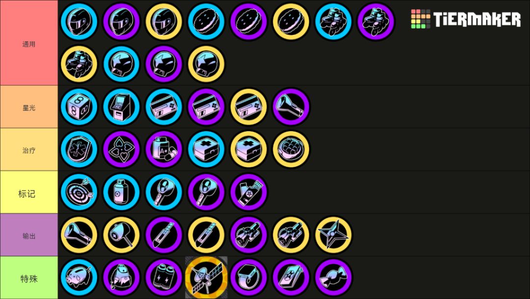 筹码分为通用筹码(即筹码一览中的基础系筹码与其他筹码)、星光系筹码、治愈系筹码、标记系筹码与地图专属筹码。