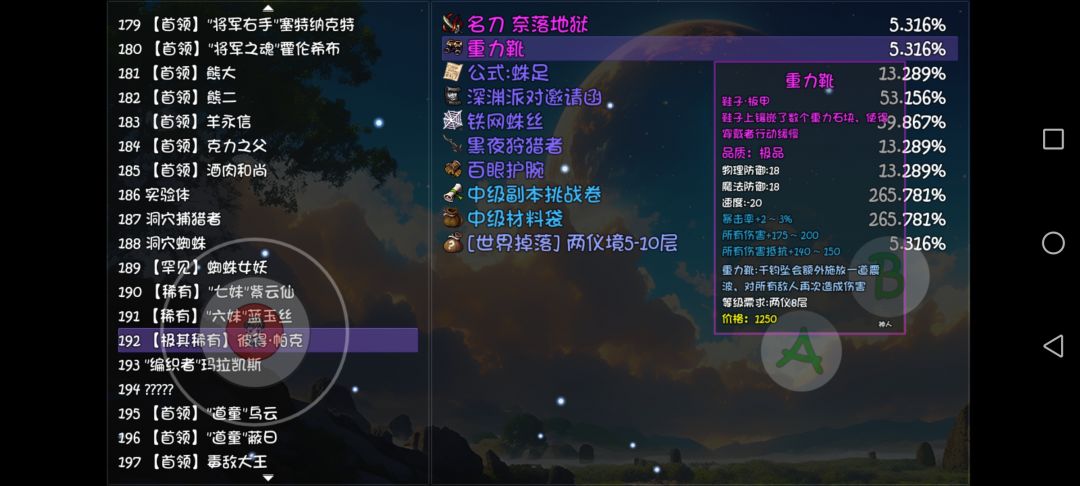 两仪版本有两个地形免疫鞋,容易获取的那个在开篇已经讲过了,这里是属性更高的地形免疫鞋。