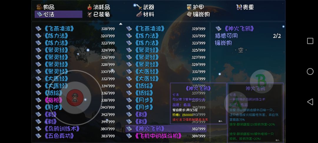 依旧老传统,仅提供容易获得,属性较好,可以多次获得的心法。