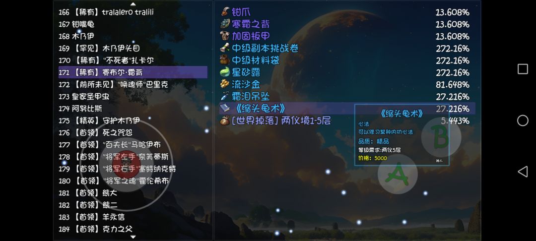 1,《缩头乌龟》,干燥高原,即沙漠第二个地图,沙漠副本所在地图的稀有怪掉落。拿到之后可以酌情替换掉《龟虽寿》了,毕竟只有200血,而且三件套没有效果。