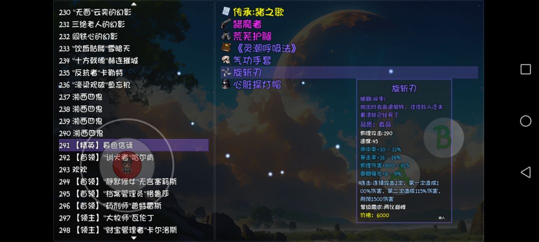 3,旋刃斩、猪之歌:暮色修道院地图掉落,旋刃斩的攻击次数只有2,我也不知道好不好,可以作为猪之歌的副产物。