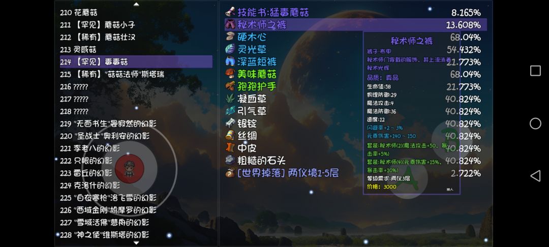秘术师裤子,孔孢幽谷的罕见小怪身上,值得注意的是,在蘑菇小子和毒蘑菇两种罕见小怪身上都有掉落。