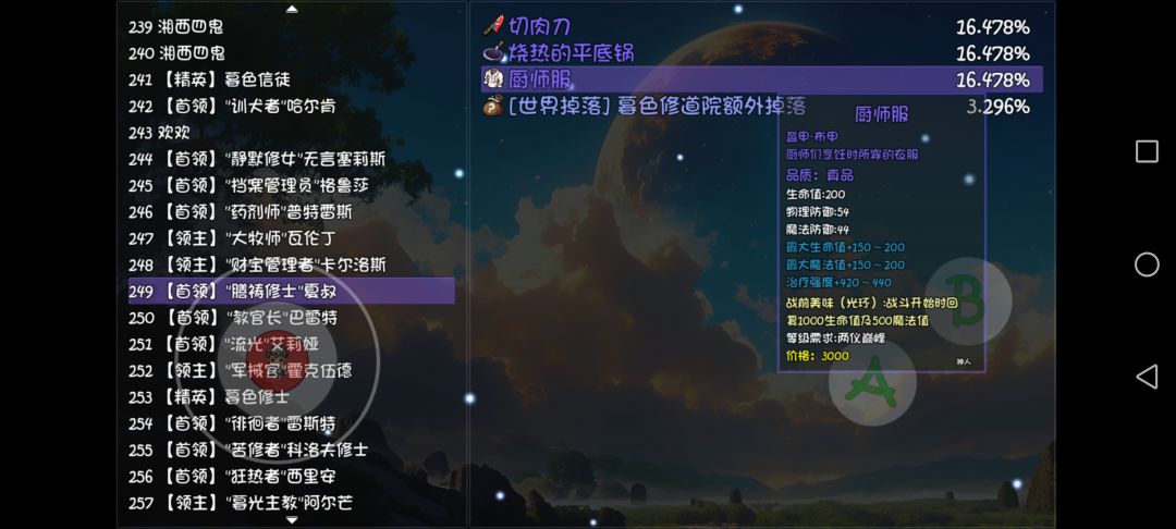 4,厨师服(开局自动回血回蓝衣服)