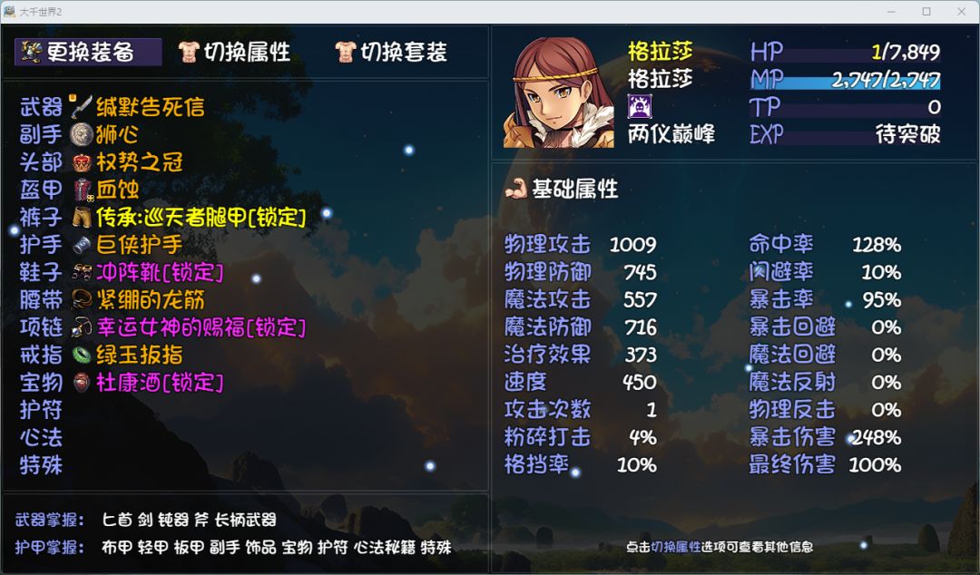 下面附上我的装备和心法配置,仅供参考: