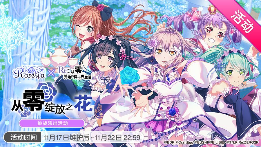 11月17日维护后,游戏内将开启「从零绽放之花」挑战演出活动、「起始的Fantasy World招募」及「起始的Fantasy World 联动限定成员1人确定 10连招募」;活动新曲《Paradisus-Paradoxum》及《Stay Alive》可以在挑战演出模式下进行演奏;活动挑战歌曲《Redo》将解锁拥有全新谱面的「SPECIAL」难度!进行演出还可体验联动期间限定的特别演出装饰哦ο(=•ω<=)ρ⌒