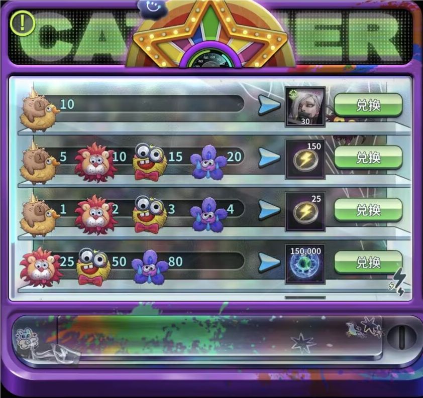 3.1.兑换分为6个档次,玩家可以用对应的玩偶兑换自己想要的物品奖励