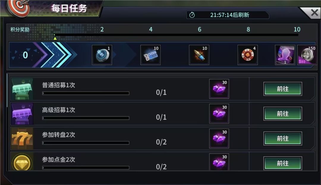各位探长可通过在边城警视厅完成不同颜色次数任务来领取档位奖励。子弹可用于刷新任务,警徽可用于重置任务。不同任务对英雄的阵营,品级和星级均有不同要求。任务可进行锁定,被锁定的任务不能手动刷新,但每隔24小时会自动刷新。