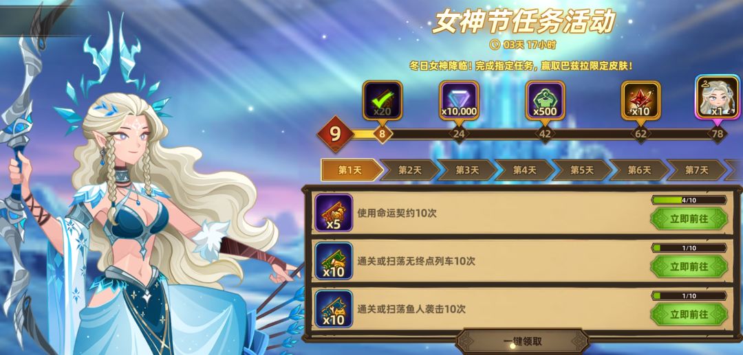 活动说明:完成指定任务获取奖励和任务点数,累计达到一定点数后即可解锁雪山的精灵巴兹拉、增幅结晶、英雄皮肤代币等海量养成资源奖励!