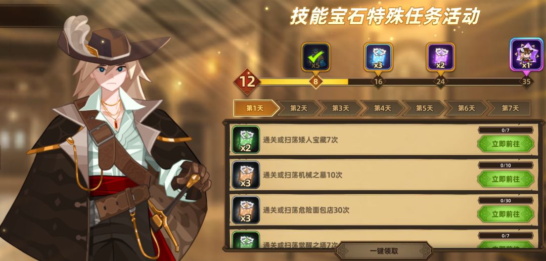活动说明:完成指定任务获取奖励和任务点数,累计达到一定点数后即可解锁四级马尔勇气宝石、四级技能宝石礼包、三级技能宝石礼包等海量技能宝石奖励!