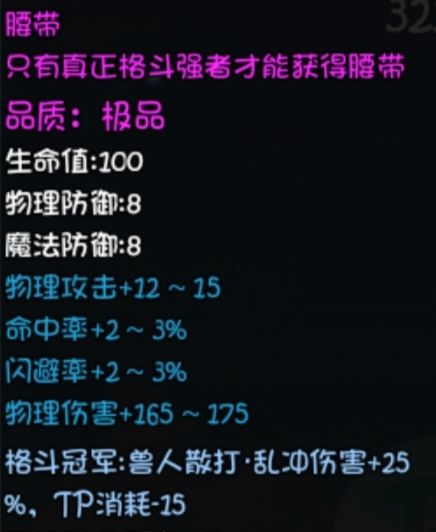 【格斗冠军腰带】(森金村(32、79)-勇气洞穴-橘子冠军掉落)