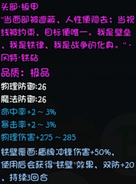 【铁壁覆面】(先古塔(120、85)-不屈铁壁掉落)
