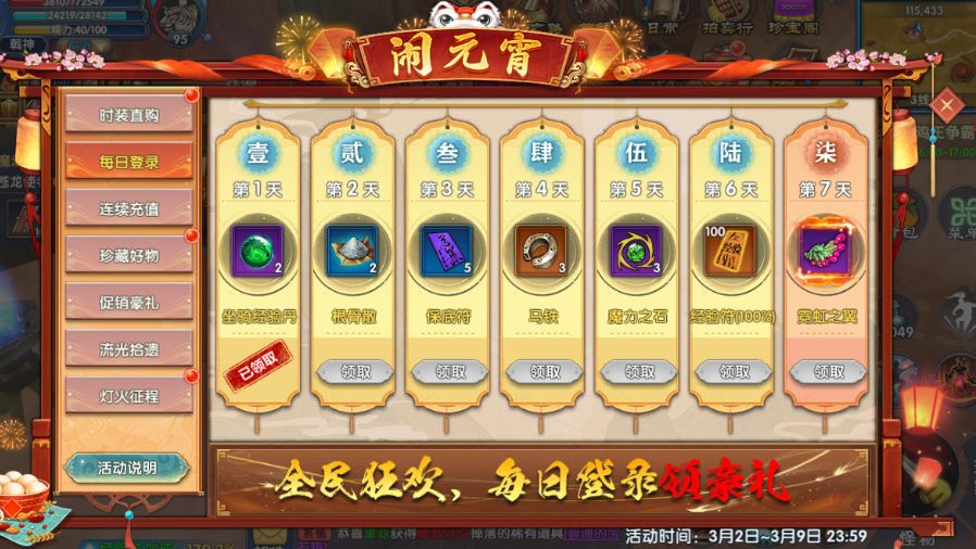 每日登录游戏即可以领取丰厚奖励