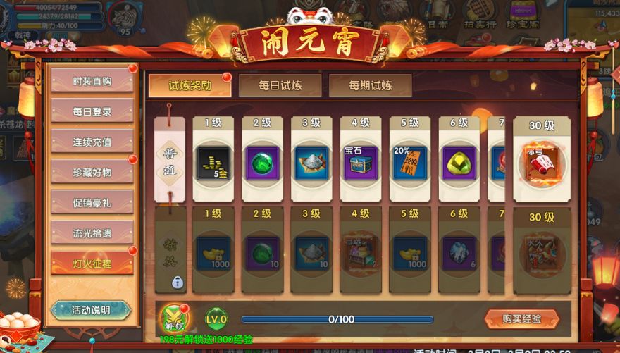 元宵专属试炼活动来袭,参与普通试炼/精英试炼即可活动丰厚奖励
