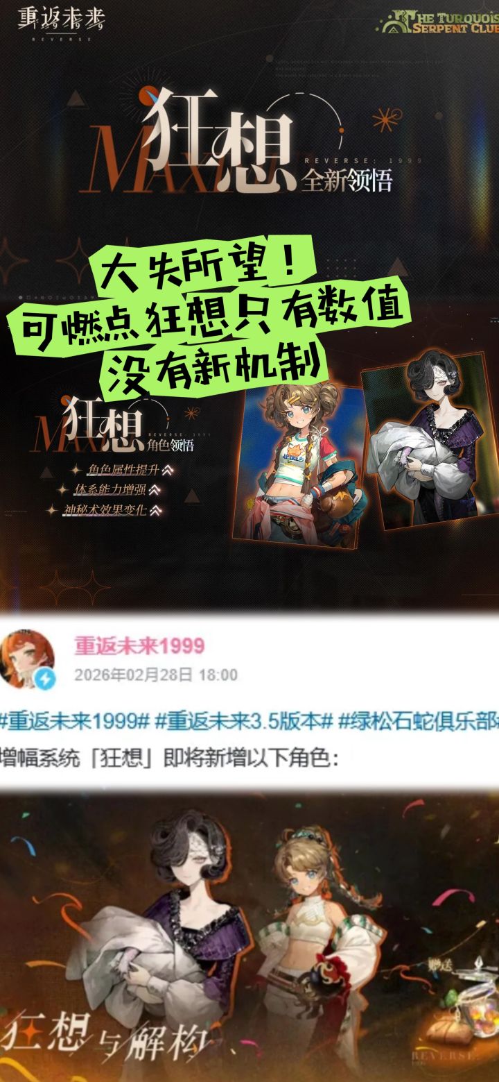可燃点的狂想被玩家认定为纯数值堆砌,全程无全新机制加入,尽管优化了燃烧体系与自拐能力,成为余辉队的过渡选择,且狂想材料可免费获取,但大招输出与余辉队现有拐力不匹配的设计,仍让不少玩家觉得诚意欠缺。