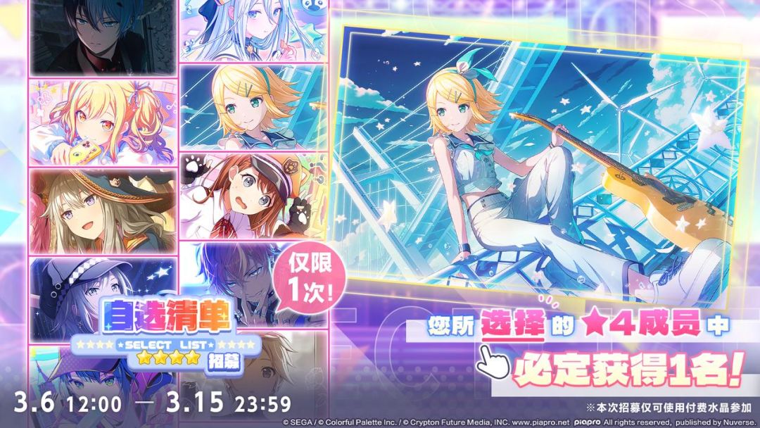*不会出现期间限定、绚烂节日限定、缤纷节日限定、组合活动限定、生日限定、纪念日限定、联动限定成员。