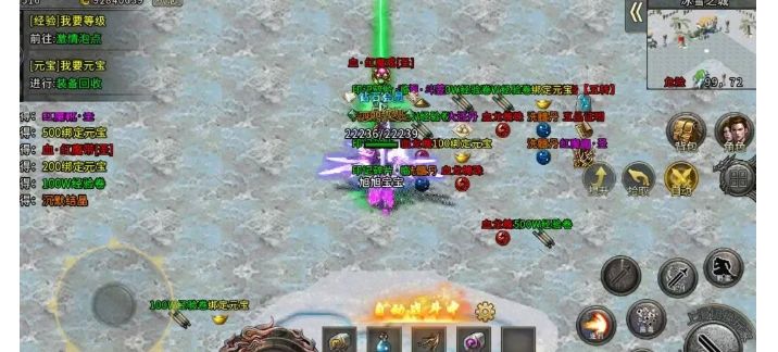 高阶核心地图(60级以上):四转是角色实力的第一个分水岭,四转后可进入新世界、火龙魔窟等核心打宝地图^。新世界的爆率明显提升,绿色小怪掉落的装备和材料能快速补齐中期进度;挂机一晚上的收获比前期刷三天都多。60级解锁的冰封天宫是目前的终极地图之一,终极隐藏BOSS“冰封魔王”每6小时刷新一次,掉落顶级装备。此外,起源宫殿(6转可进入)虽然需要消耗500元宝门票,且存在妖兽,刷怪效率不错,且会掉落全服高级装备,适合在其他地图刷怪拥挤时选择。冰雪龙域则是挑战与机遇并存的新天地,击败冰霜巨龙可获得顶级装备,但需带上足够的药水并组队行动,确保安全。