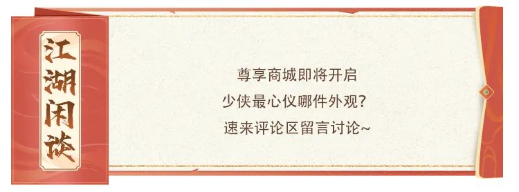 春满江湖,颜值焕新!元宝商城【尊享外观】页签即将解锁,新品时装、坐骑惊艳上线,限时坐骑特惠同步开启,记得3月4日上线,挑选属于你的春日江湖穿搭,骑上心仪坐骑,赴一场春暖花开的江湖之约吧!