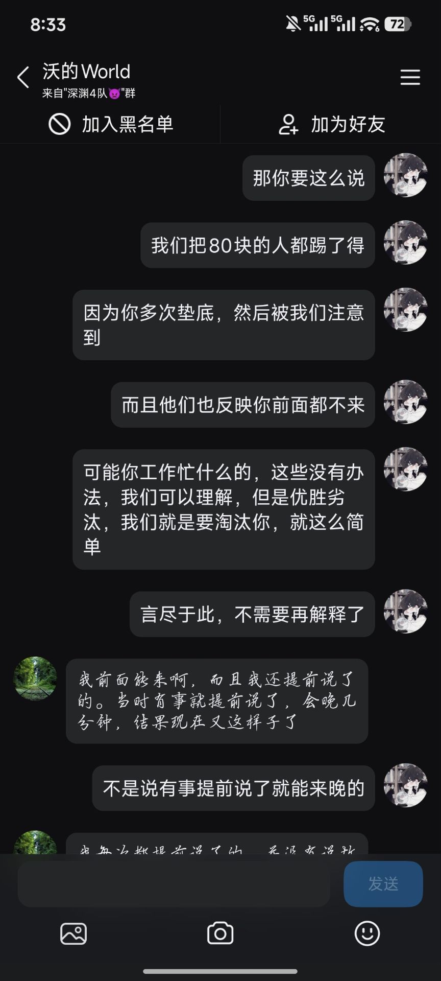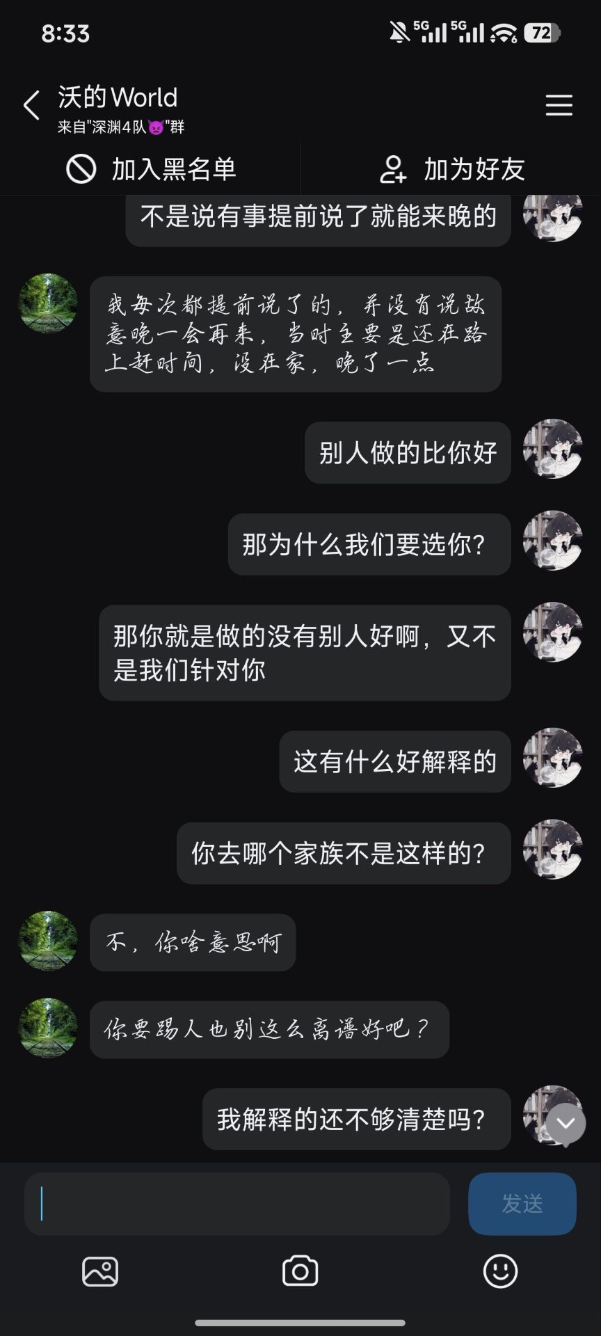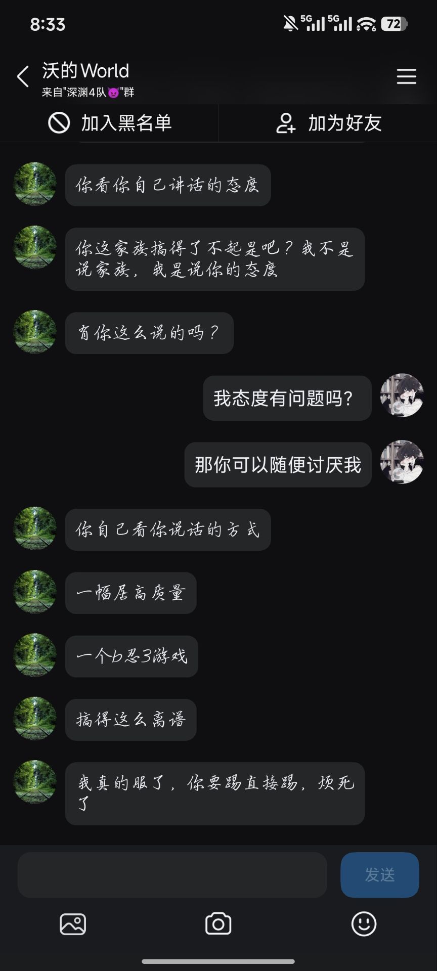本来就是一个很正常的优化,一定要跟我扯这些,我把证据摆出来,他知道自己菜知道自己有错了,然后开始又急了,如果不是因为他最后在家族说的这些话,我都不想挂他出来,后面还有他的配置以及近期的一些伤害,没有调完,更离谱更低的还有,正常优化人,然后说我态度不好了,在家族里面开始发脾气了,何意味
