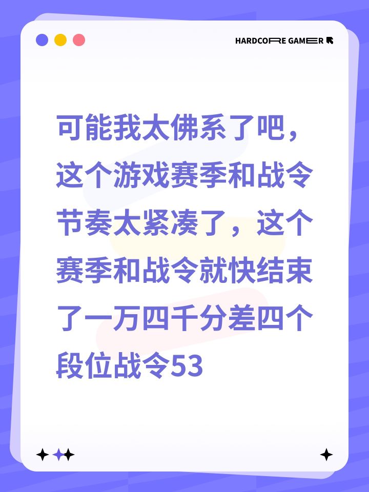 可能我太佛系了吧,这个游戏的赛季和战令节奏太紧凑了,这个赛季和战令就快结束了一万四千分差四个段位,战令53。不想打了这个赛季结束下个赛季的任务又来了,对了,还有战令要开。要拿战令将又要开,哎呀