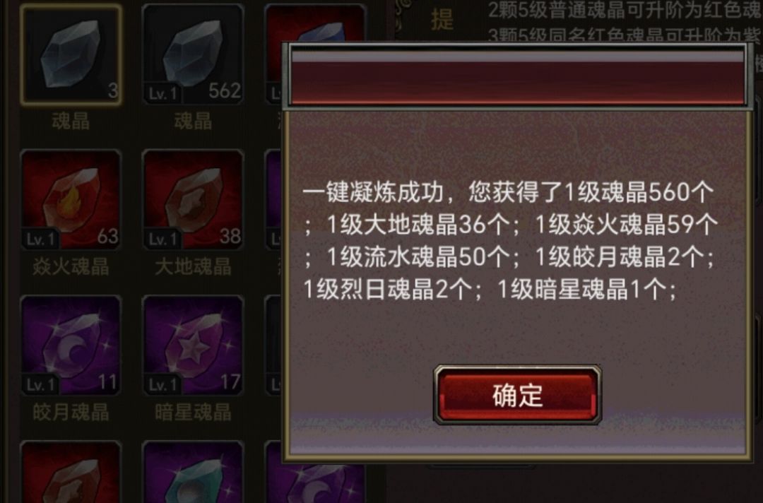 原理:5颗魂晶凝炼成一颗并升一级。