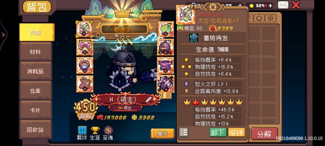 有时停用时停,没有就用生机齿轮的替代,每个抗性词条均衡分配。(打Boos换成碎裂)