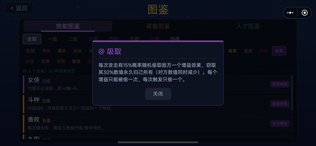 或许可以加强一下 15%触发和30%属性有点弱 20回合下来一到两个增益效果 偷三个才比得上他同品级的收益 建议触发概率可堆叠…或高(50~80)属性触发概率不堆叠