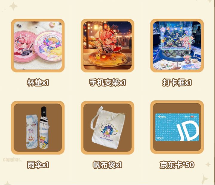 4.京东E卡请添加工作人员,将以电子码的形式发放;实物周边奖励将于15个工作日内寄出;