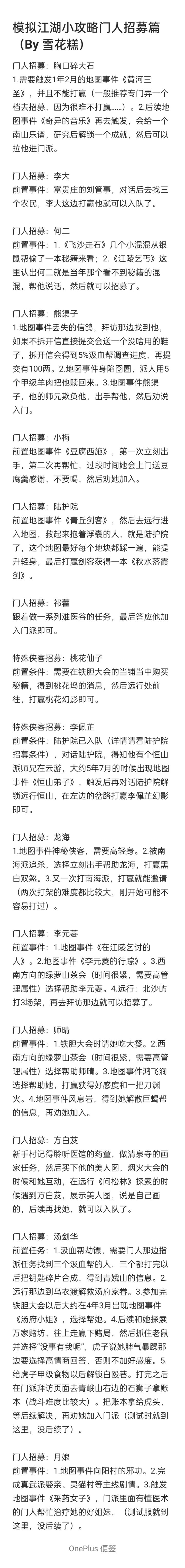 前置任务:1.汲血帮劫镖,需要门人那边指派任务找到三个汲血帮的人,三个都打完以后把钥匙碎片合成,得到青娥山的信息。2.远行那边到乌衣渡解救汤府家眷。3.参加完铁胆大会以后大约在4年3月出现地图事件《汤府小姐》,选择帮她。4.后续和她探索万家赌坊,往上走赢下赌局,然后抓住老鼠并选择“没事有我呢”,虎子说她脾气暴躁那边要选择高情商回答,否则不加好感度。5.给虎子甲级食物以后解锁白殴巷。打完之后在门派拜访页面去青峨山右边的石狮子拿账本(战斗难度比较大)。把账本拿给虎头,等后续解决,再劝她加入门派(测试时就到这里,没后续了)。