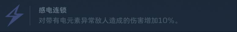 ②感电连锁:对带有电元素异常敌人造成的伤害增加10%。