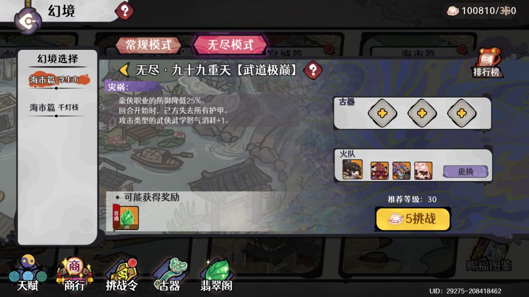 幻境挑战再启新篇,上天入地,奇境无穷!「海市篇」震撼开市,神话神装、绝品古器,静待少年前来探寻!从浮生市到千灯栈,漫漫九十九重天际,便是武道之巅,等你来登!