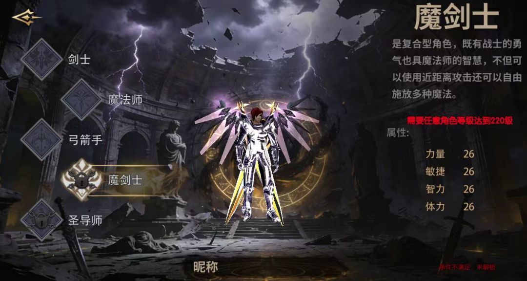 四、实战场景适配技巧:全场景战力拉满魔剑士的实力需在实战中精准发挥,不同场景需调整战术思路,核心是“形态切换及时,技能释放预判”。(一)PVE副本攻坚普通副本:远程形态“冰封爆破+雷霆之击”快速清场小怪,避免被围堵;遇到精英怪时,切换近战形态开启“钢铁壁垒”抗伤,用“雷霆震击”控场,配合队友输出的同时补远程爆发。BOSS战:重点预判BOSS大招时机,提前开启“钢铁壁垒+不屈意志”双抗伤技能,大招结束后切换远程形态,“破甲印记+雷霆之击”打爆发;利用“暗影穿梭”规避BOSS AOE伤害,避免贪伤猝死;群怪阶段可释放“达摩克之剑”快速清场,节省时间。(二)PVP 1v1对战核心思路是“远程风筝+近战反制”:面对近战职业(如剑士),保持15米远程射程,用“冰封爆破”减速,“雷霆之击”持续消耗;敌方突进时用“暗影穿梭”拉开距离,若被逼近则切换近战形态“雷霆震击”控场反打,触发无敌技能后撤离拉扯。面对远程职业(如魔法师、弓箭手),可主动切换近战形态“冲锋撞击”突进,控场后衔接爆发技能,打敌方措手不及;利用双系伤害优势,快速压低敌方血线后收割。(三)团队团战团战中需扮演“战术枢纽”角色:开局切换远程形态,“冰封爆破”控场敌方前排,为队友创造输出环境;中期敌方突进时,切换近战形态开启“钢铁壁垒”顶住伤害,用“雷霆震击”控制敌方核心输出,保护后排远程;后期敌方残血时,切换远程形态“雷霆之击”或大招“断空影袭”收割,扩大团战优势。需牢记职业克制关系(魔剑士克制剑士、圣导师,被弓箭手、魔法师远程压制),优先针对敌方脆皮输出,避免与克制职业硬拼。