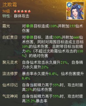 9号位沈欺霜,单体输出高额伤害,有景天扛伤不怕阵亡,输出就行战斗;