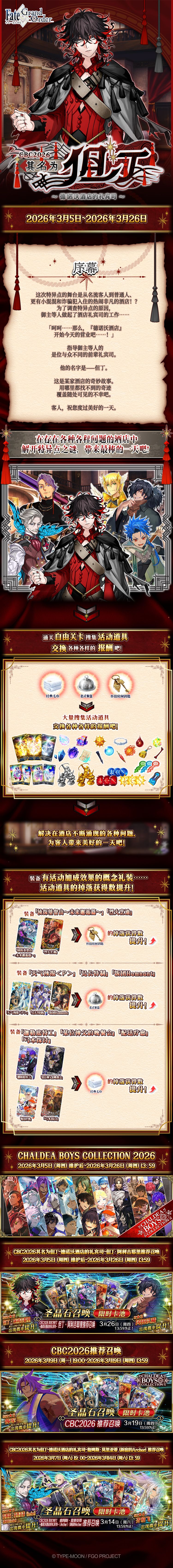 为各位亲爱的御主奉上「CBC2026 其名为但丁~德诺沃酒店的礼宾司~」活动前瞻!