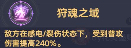 狩魂之域:敌方在感电/裂伤状态下,受到普攻伤害提高240%,完美契合莫长歌蓄力普攻的输出模式。
