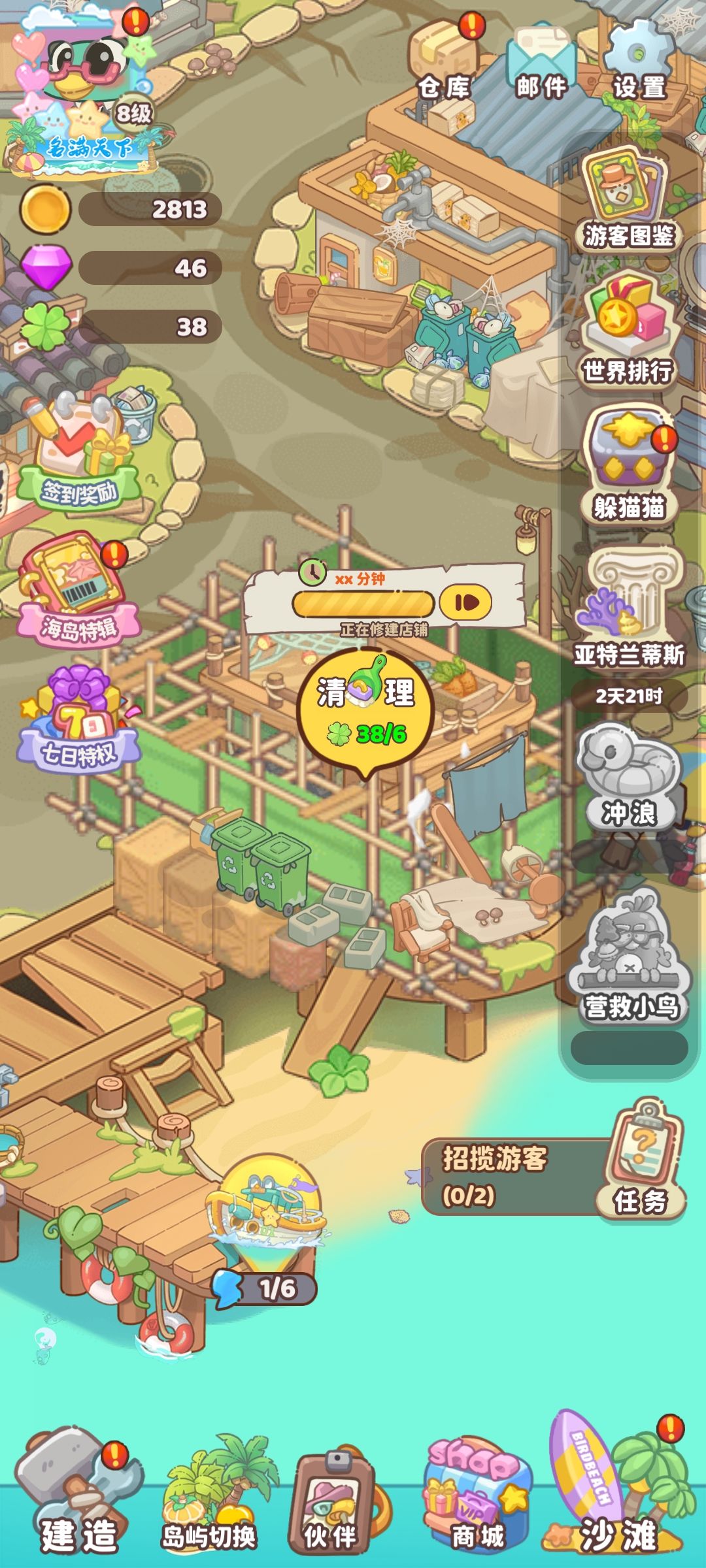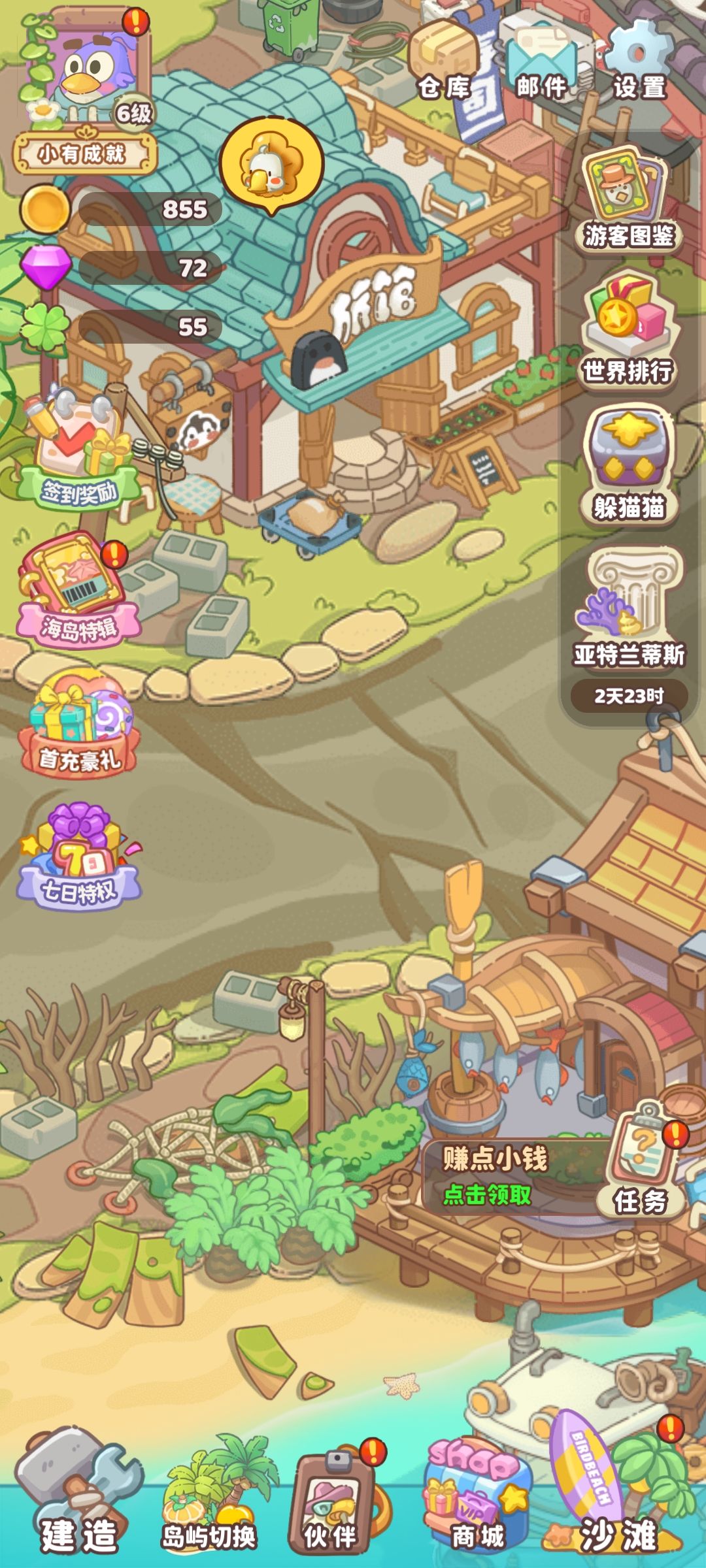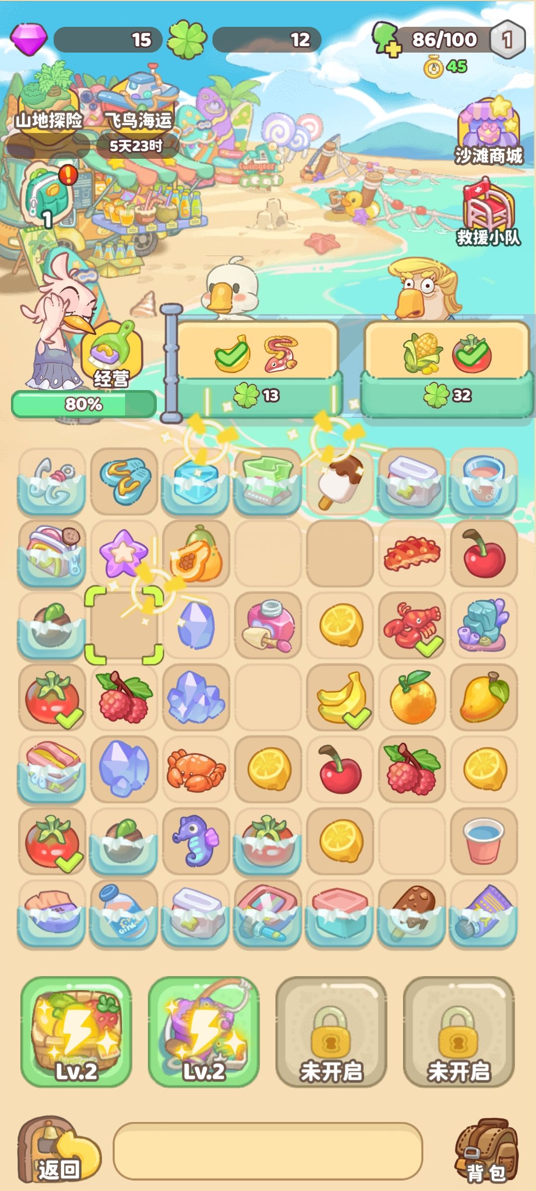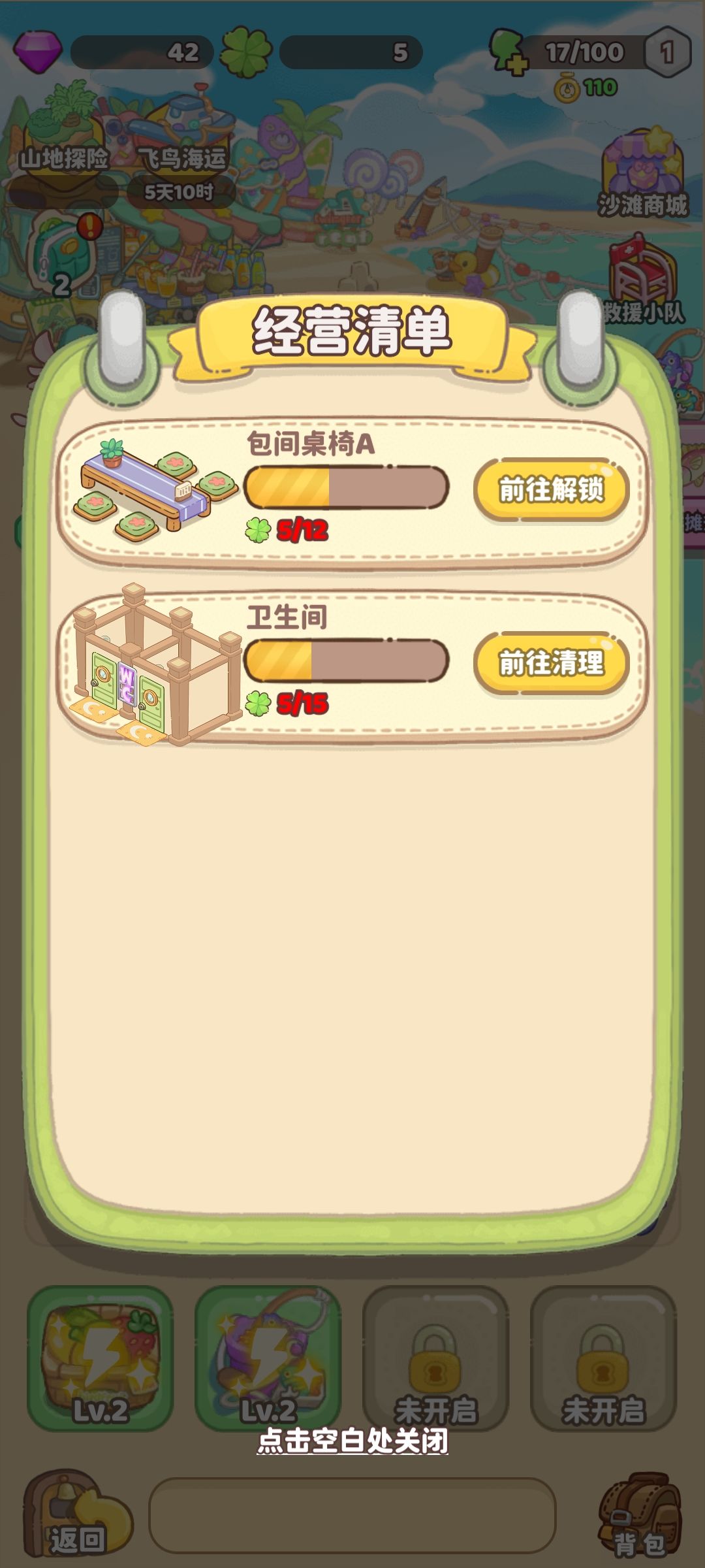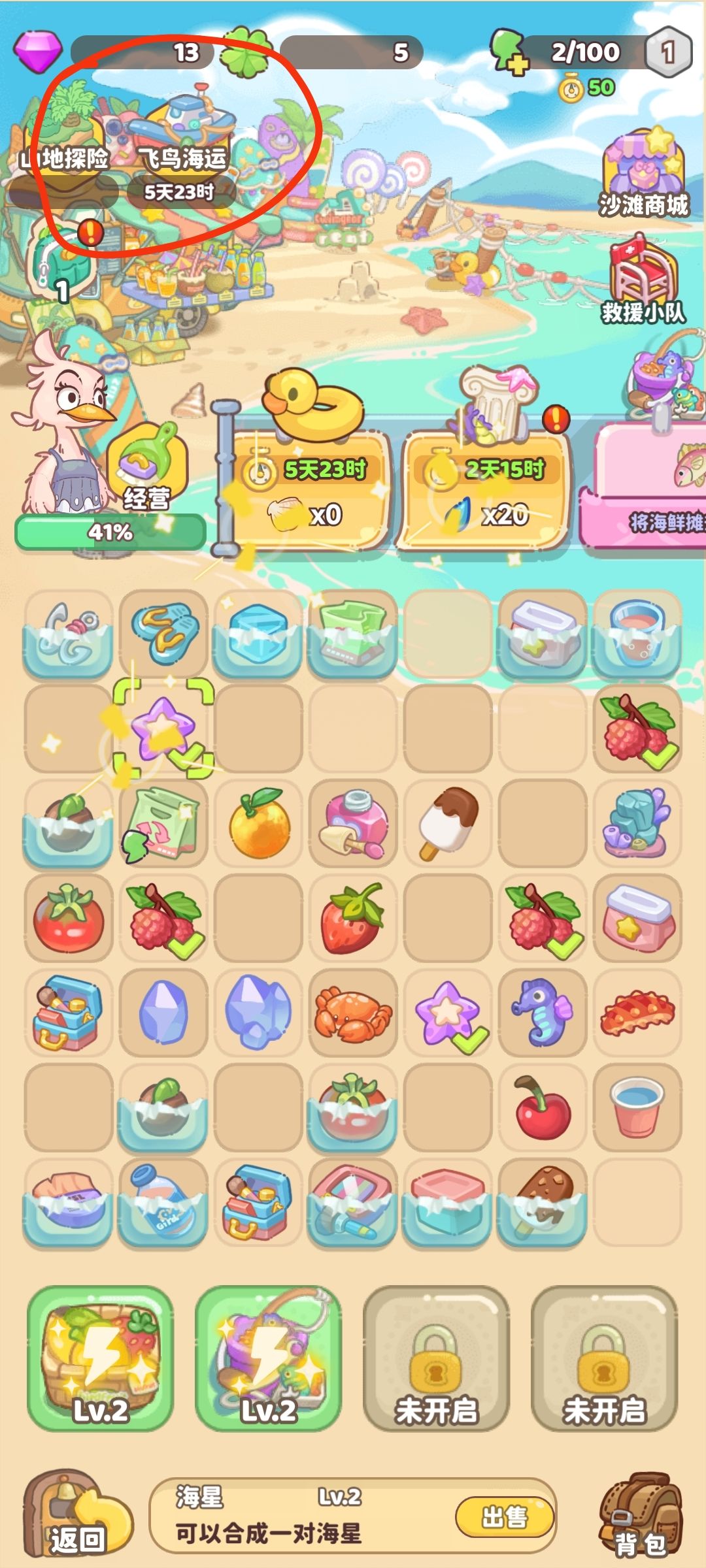 从沙滩里面点开经营,再点击前往解锁就会转换界面。但是解锁完一个他就会退出到游戏主页面(不是登录界面)???我还想解锁其他就给我退出去了,这样设计是不是有点奇怪了。