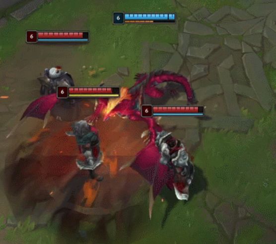 Q技能余烬打击:下次普攻对目标及周围造成溅射伤害,可重新施放;龙形态下可额外施放一次,对单体目标造成高额伤害。
