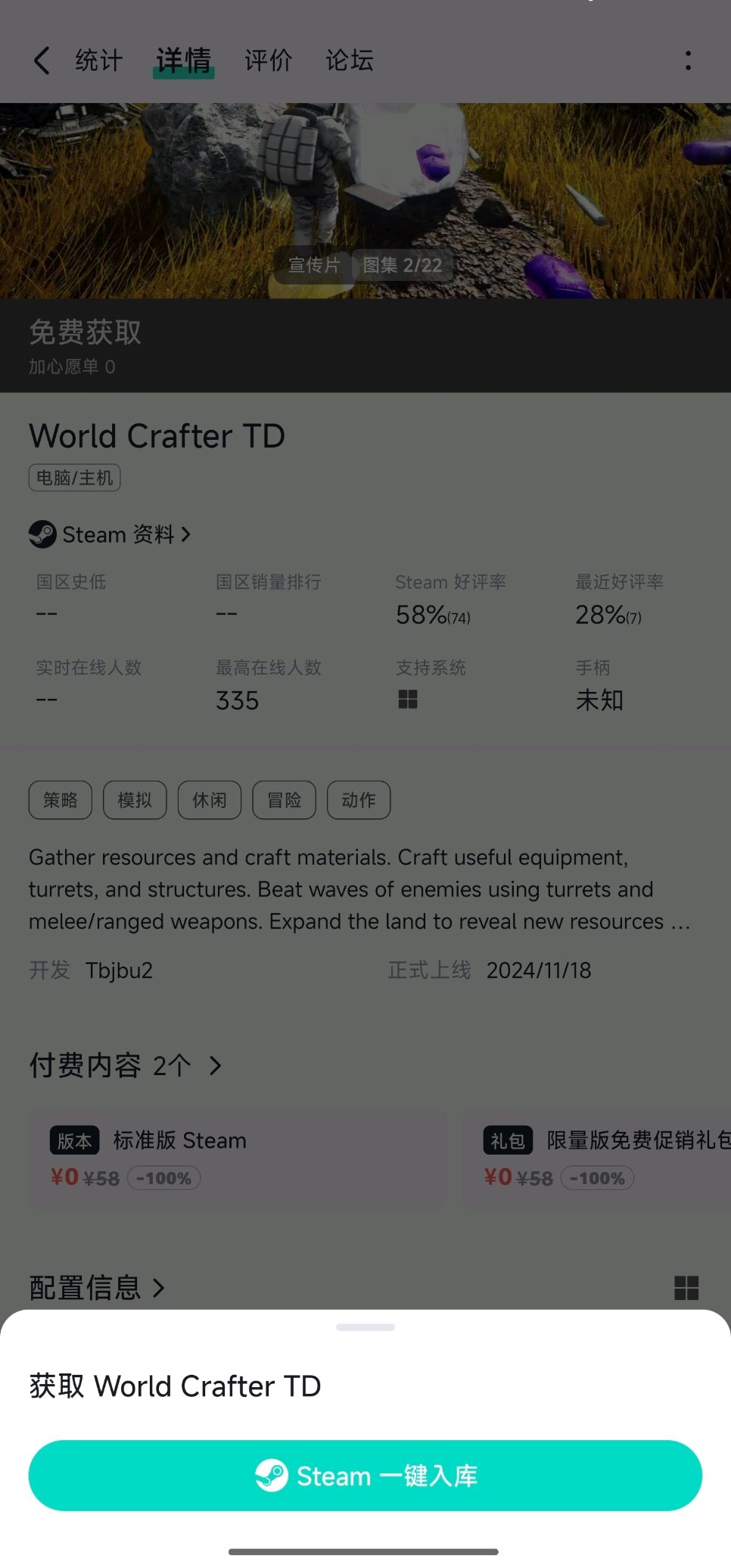 限时 3 天的限免塔防游戏!快来入库吧~