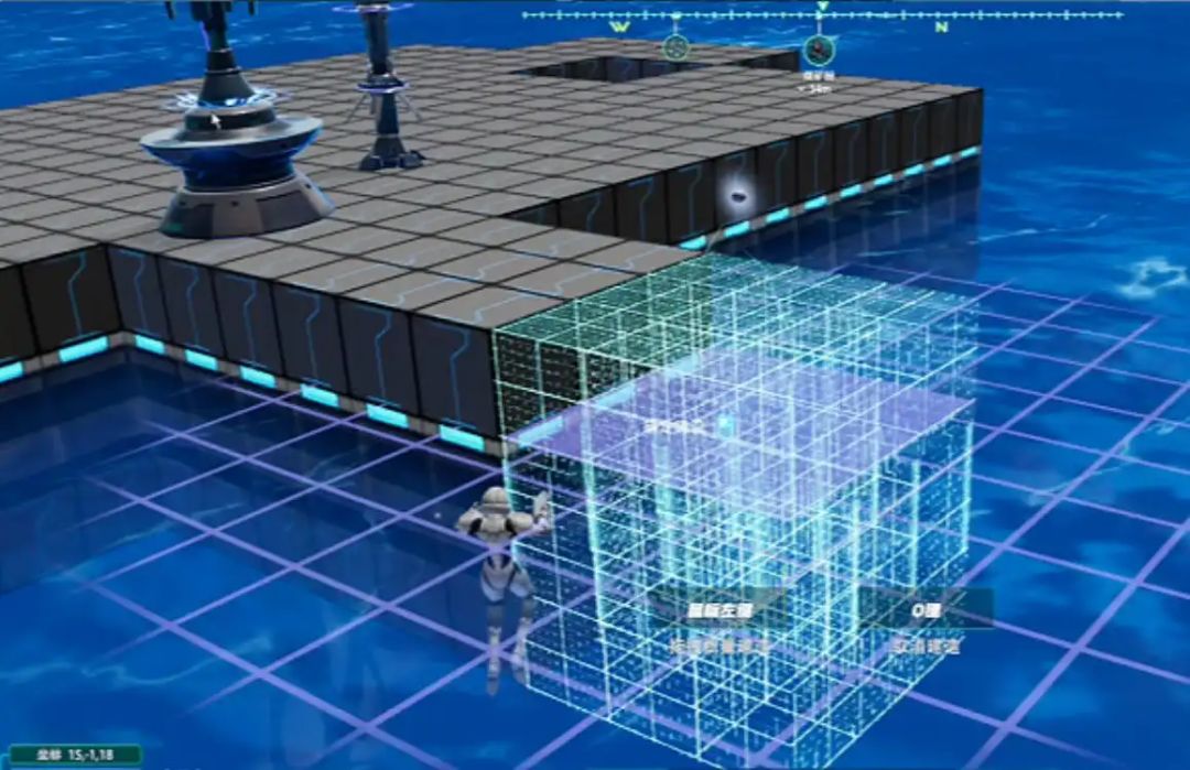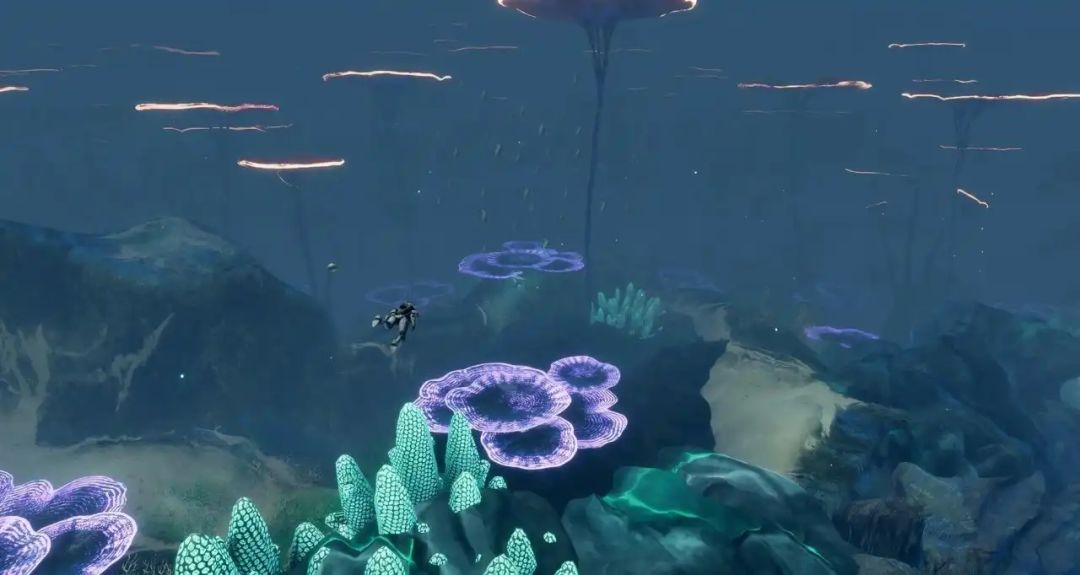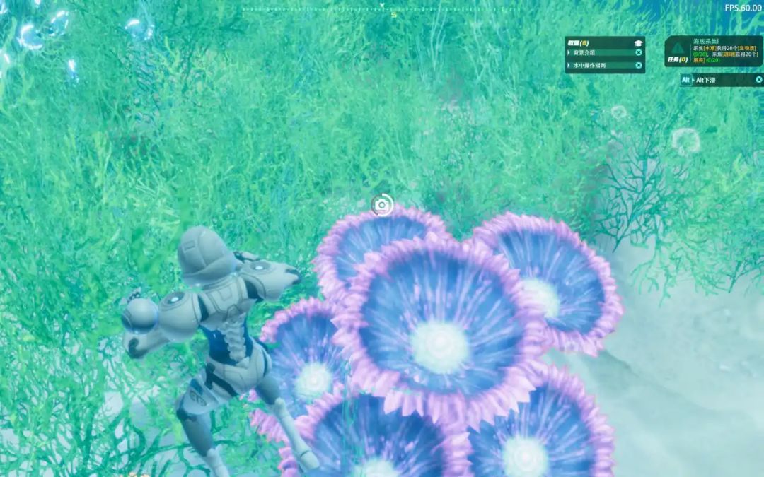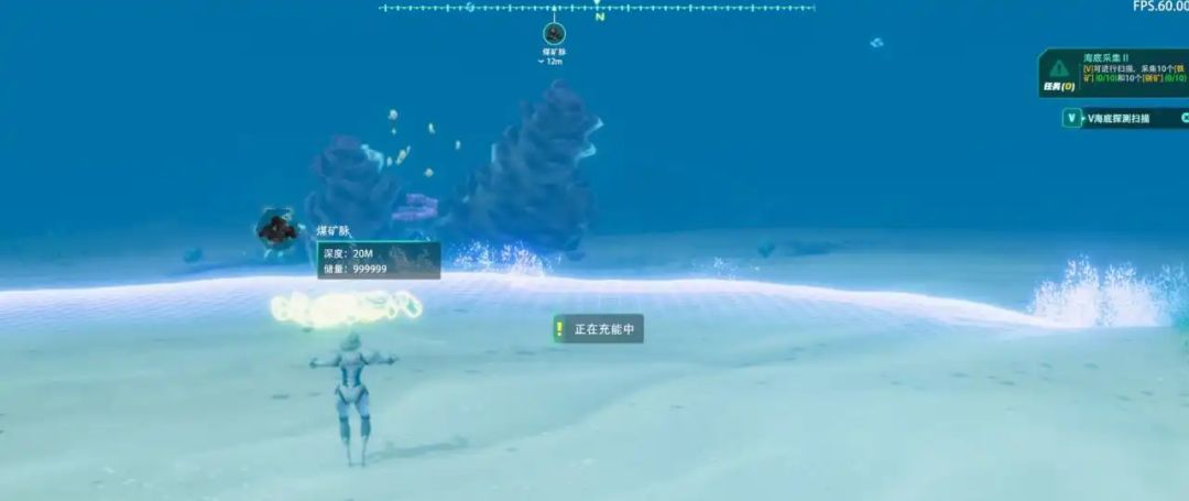 跟其他沙盒游戏一样,前期需要先去野外收集物资才能发展。本作将基础物资等都安排在了浅海区域,玩家可以按下v扫描,收集积累资源建造装备。