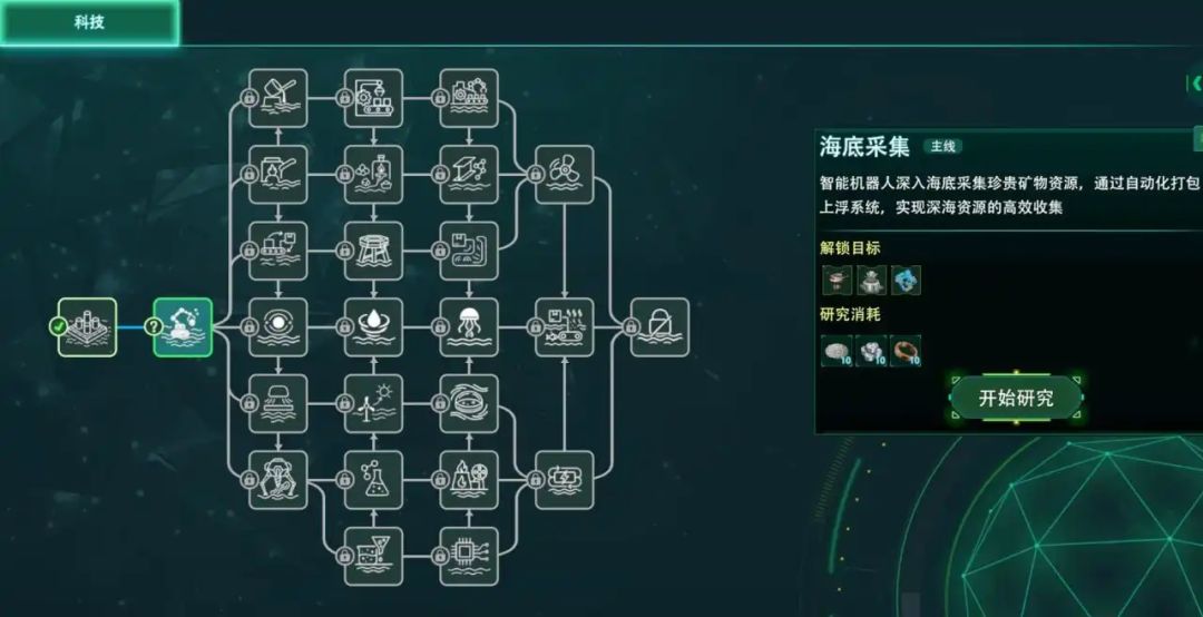 游戏目前的科技树加点挺多的,想要造个自动化流水线就得先一个个研究解锁(不过解锁也不难,探图的时候多收集一些以防不备即可
