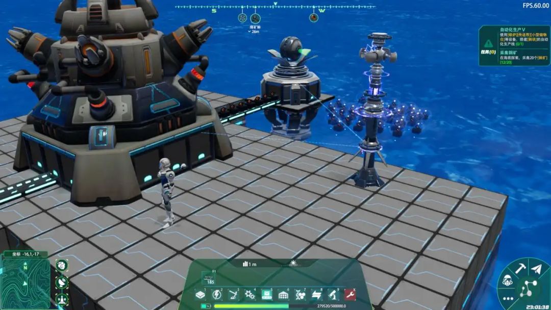 随着资源的积累与科技树的解锁,玩家可以逐步扩大自己的海上平台、做出一堆自动化,一点点进入自动化生产阶段。
