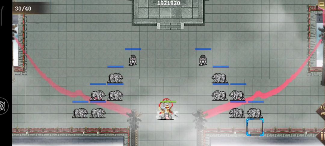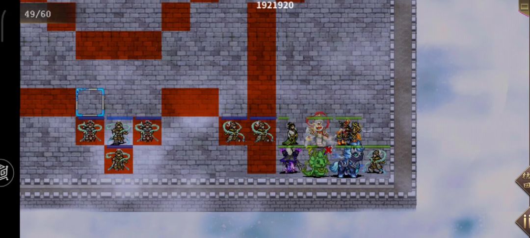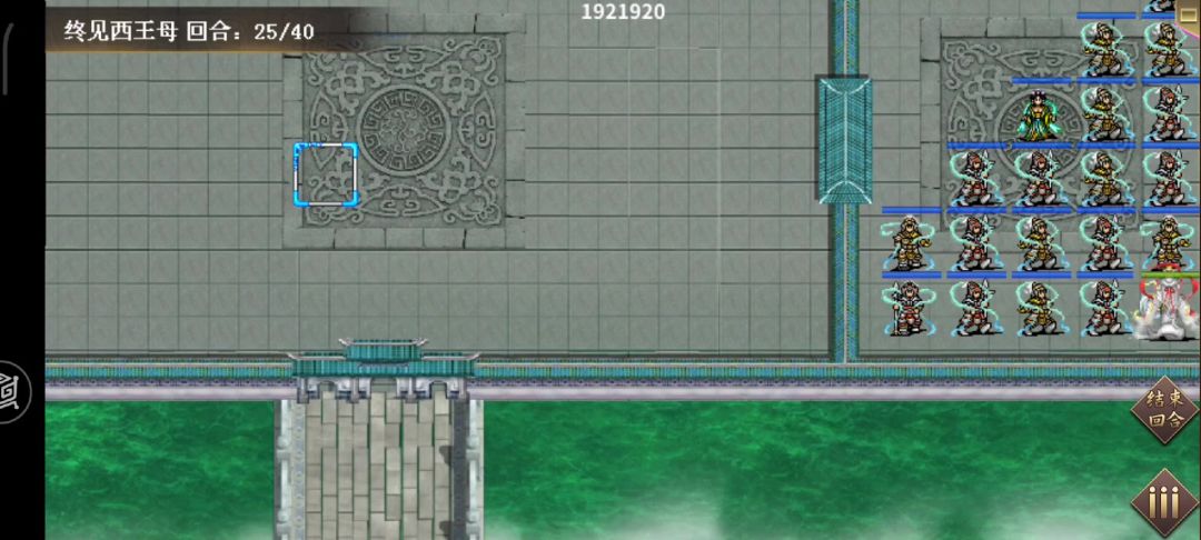 第四关:开局吕布清场,在打完第一个小仙女前,马云禄200运气出特技加蚩尤加豆袋,站右边城里面等着挨揍,其他人都在右下角等候,等全部敌人都跑到右边城后,吕布多次来回把五个小仙女打出不屈,华佗带天命鼎在中间城吸引火力,同个回合打死五个不屈的小仙女后,王母出现,来回捅个不知道多少次就可以过关,简单的一关,视频也来个。