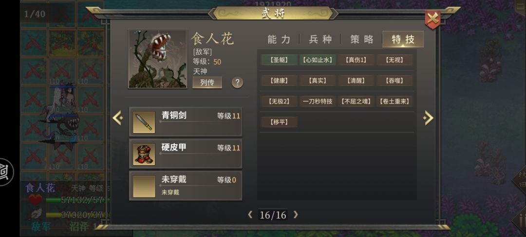 第二关:因为没有盘古斧,跟不上攻略,吕布带鬼神应龙,天命鼎,4阶的卢,一路无极加回归跑过去,食人花boss自带不屈和卷土重来,用应龙得点杀得三个回合,具体看视频,同样,如履平地这关也不吃。