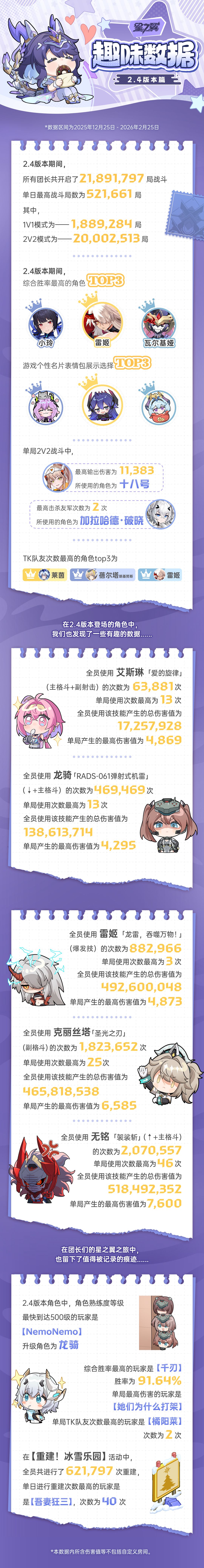 关注《星之翼》,在评论区分享你对本次趣味数据的看法~3月13日我们将在评论区随机抽取3名团长送上【星之翼角色立牌*3】。