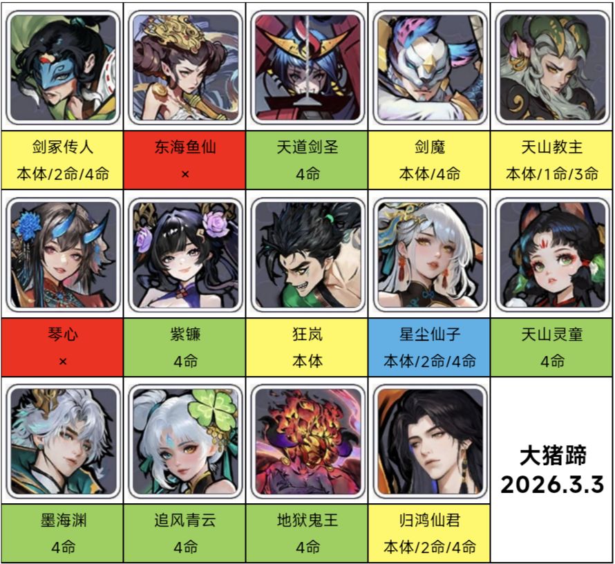 6.无尽毕业阵容(选择1队培养即可,不含仙君)