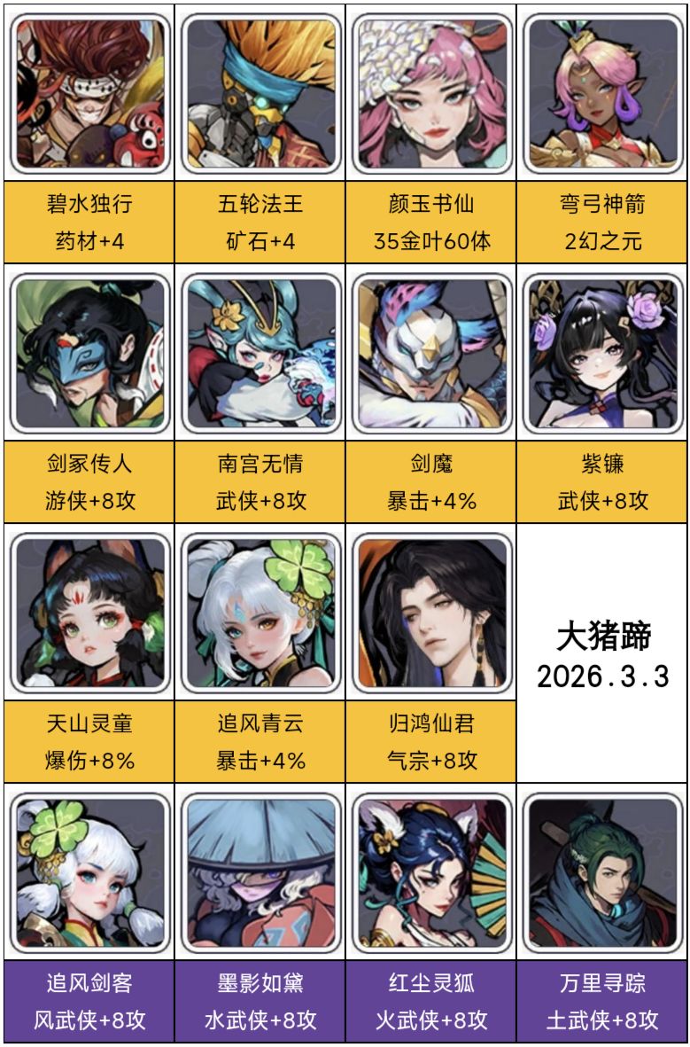 2.常用宗师武侠(优先培养)