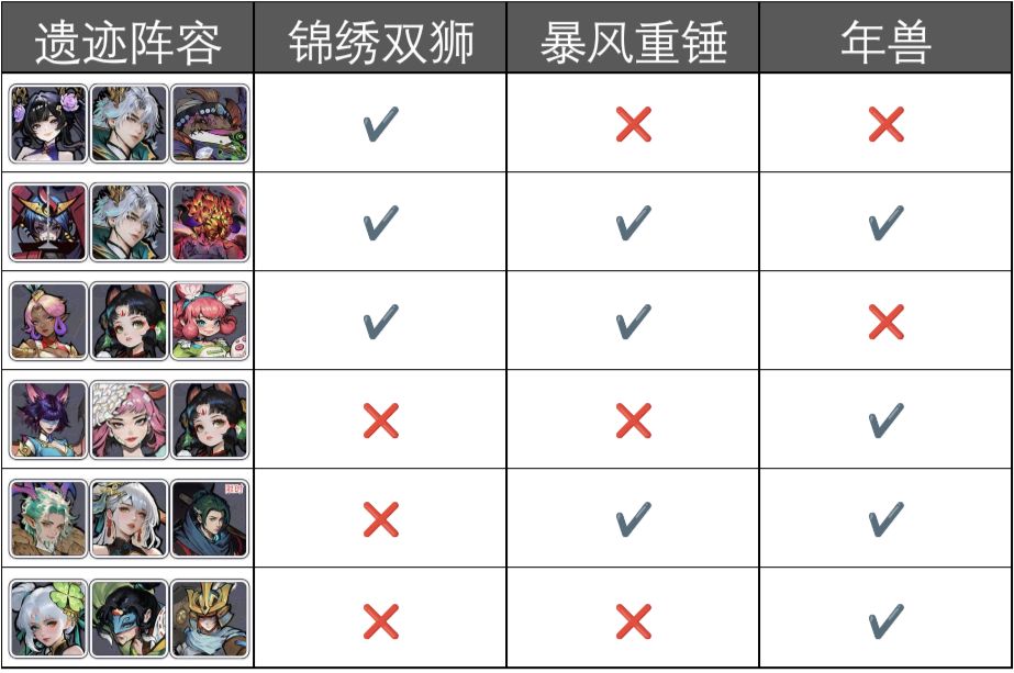 7.上古遗迹阵容