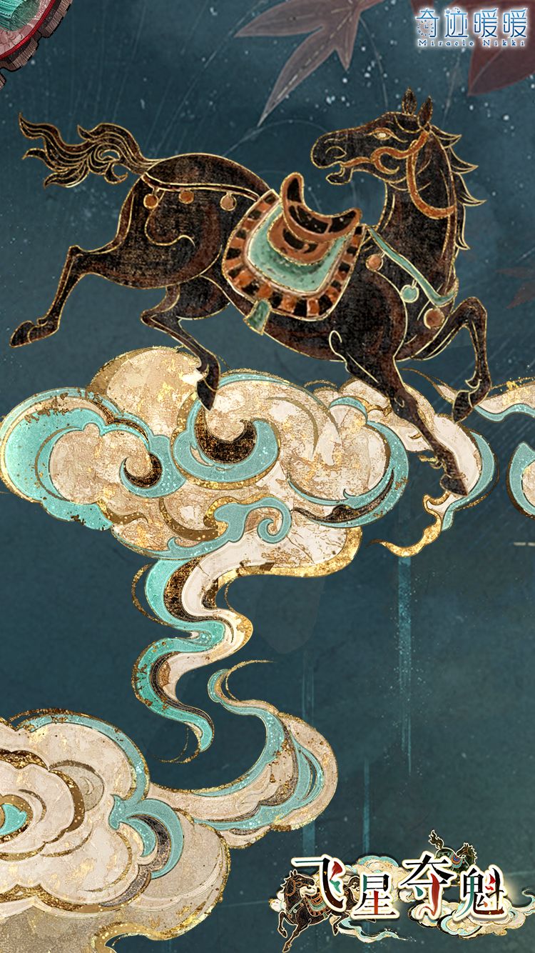【飞星夺魁】含正常姿势与特殊姿势,全新妆容“踏莎行”,特殊姿势外套“龙驹蹑景”,特殊姿势鞋子“奔逸绝尘”,红绸马尾“日行千里”,精美可移动摆件“凌霄逐月”、“擂鼓震震”、“驾云乘风”。
