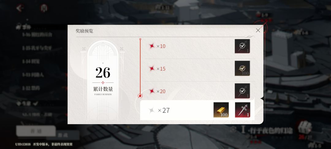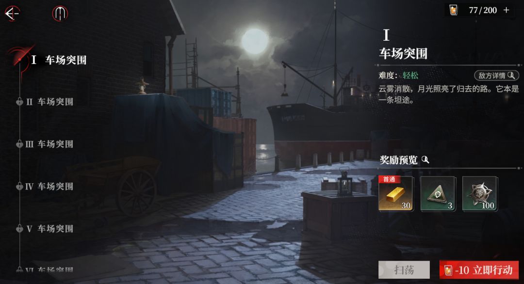 每个剧情战斗观/物资关卡首次通关可获得30金砖