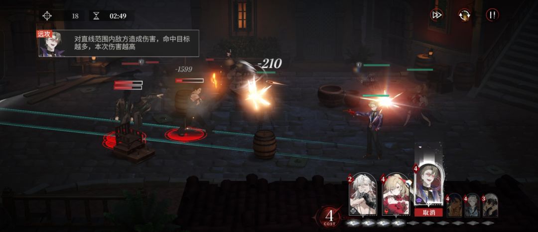 接下来就是前排没血给治疗给野狼终结技,然后使用范围伤害收掉怪物。需要注意的是,我们在出第二场的时候最好手里有火烛的终结技
