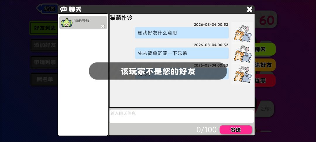 我自己双开这把玩的摩西全局没筹码,开局看到有个8级小雷,开局直接技能,前期身上20多不升星选择多走一步K头,给了牌还没K死,最后一回合boss必死了,偏去打孔雀还闪避死了,游戏结束了。态度还可以起码加了好友同意了